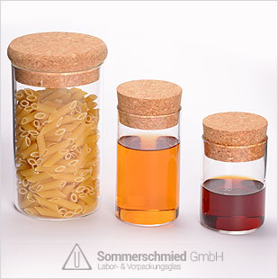 Beaker glasses made of technical borosilicate glass have high thermal resistance, are dishwasher-safe, and microwave-safe. The rim is slightly fused, and matching conical cork stoppers and cork lids are also available from stock. A large flat-bottomed jar is a simple, decorative, and practical glass container that can help reduce the use of plastics. These glass containers are ideal for printing content information or your desired logos On request, we can also supply them with a lid.
